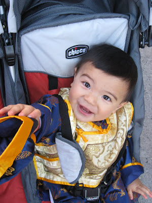 結果穿好了要出門前, 爸爸才跑來跟我說, 小肉包穿的是顎圖曼服飾啦! "啊? 可是這套衣服是在黎巴嫩的時候愛打姑姑帶我去買的耶!" "那是因為顎圖曼帝國在西元十五, 十六世紀左右的時候版圖有包括中東地區啊!" 哎呀..... 搞半天穿成土耳其的衣服啦! 不過不講也沒人知道, 就假裝還是跟爸爸配成一對吧! (帽子是在土耳其買的倒是真的......)